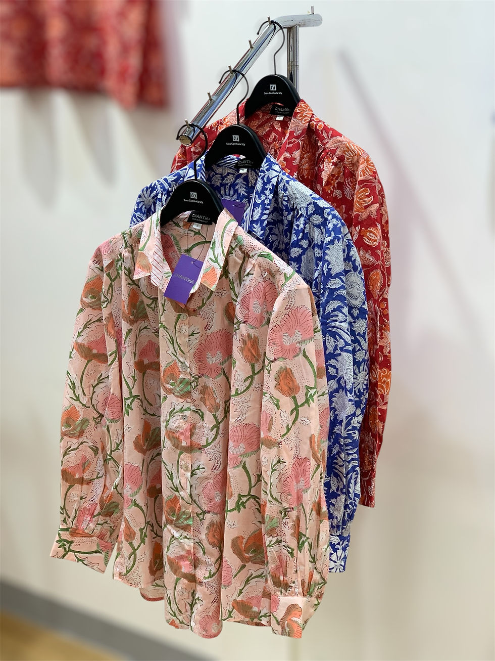 【新作新柄】ブラウス 春夏ファッション インド綿 ブロックプリント レッド 赤色